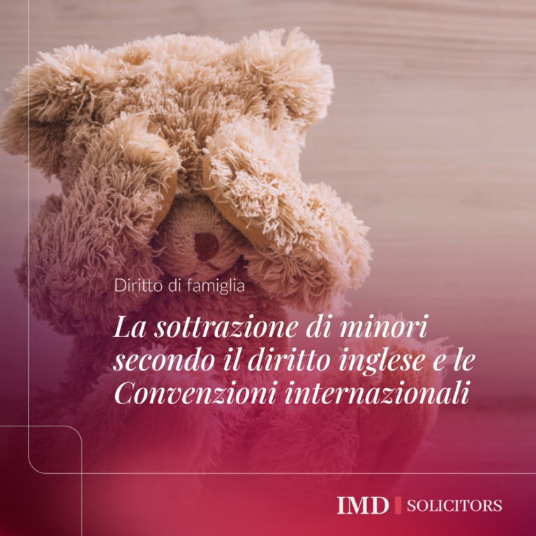 La sottrazione di minori è definita in Inghilterra e nel Galles come il trasferimento illecito o mancato ritorno del minore di anni 16. La legge è severa nei casi in cui esiste la responsabilità genitoriale e il consenso viene negato. Spesso le controversie insorgono nella separazione o nel divorzio. Le conseguenze sono sia penali che civili. IMD Solicitors LLP fornisce consulenza sulla prevenzione e sulla risposta, sia in Inghilterra e nel Galles che all’estero.